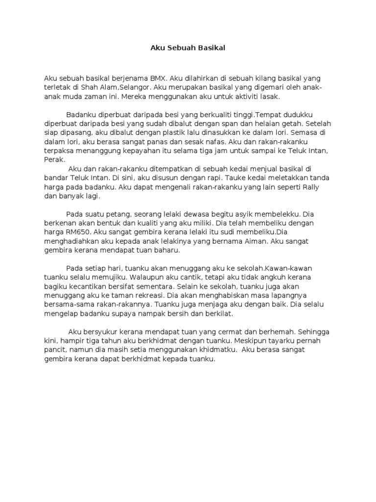 Aku Sebuah Basikal Docx Tulis Sebuah Karangan Yang Bertajuk U201caku Sebuah Basikal U201d Aku Sebuah Basikal Hai Unibike Adalah Nama Aku Aku Dilahirkan Di Course Hero